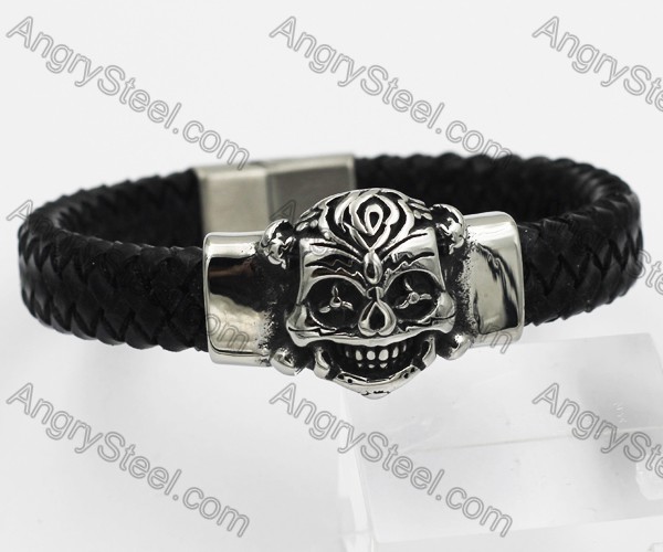 Stainless Steel Skull Clasp Leather Bracelet KJB490012