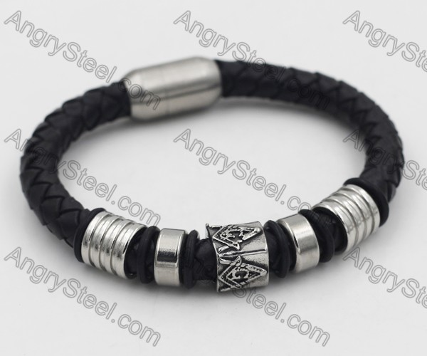 Stainless Steel Leather Bracelet KJB510003 Price:$3.1