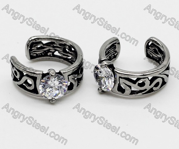 Wholesale Antique Silver Plated Stainless Steel Skull Casting Earrings inlaid clear Zircon Stone - KJE050036 Price:$2.5