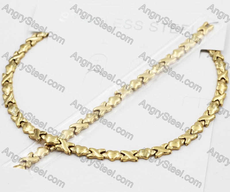 12mm Wide Neckalce & Bracelet Set KJS550126 Price:$9.36