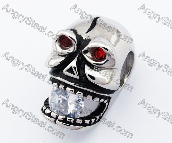 The Video Of Stainless Steel Red Stone Eyes & Zircon Stone Skull Pendant - KJP170151: