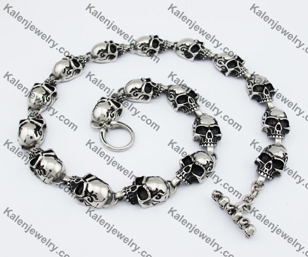 12mm Wide Stainless Steel Skull Necklace KJN550012 Price:$18.89