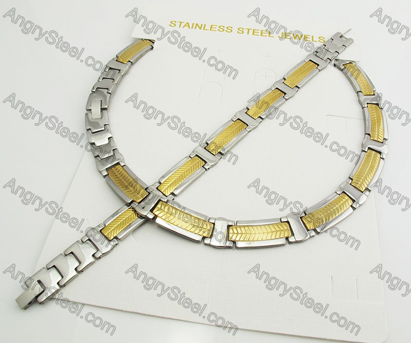 Assorted 3 colors of Silver, Black and Gold Plated Stainless Steel Chain Jewelry Sets - KJS180012 Price:$7.25