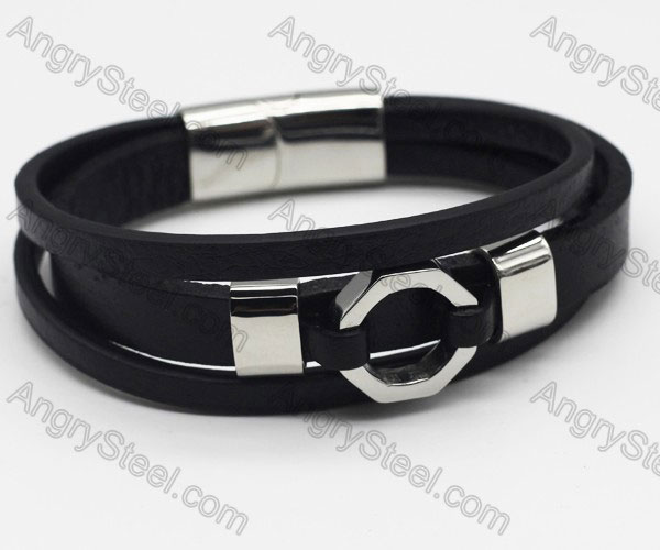 Stainless Steel Leather Bracelet KJB490005 Price:$4.44