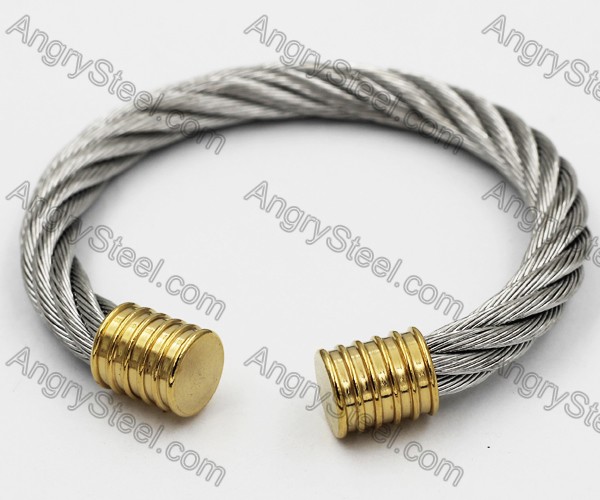 Stainless Steel Half Gold Wire Bangle KJB4500107 Price:$2.44