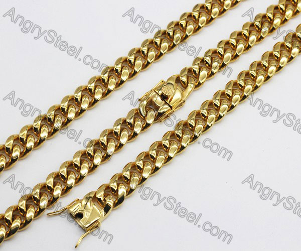 Assorted 3 colors of Silver, Black and Gold Plated Stainless Steel Chain Jewelry Sets - KJS180012 Price:$7.25