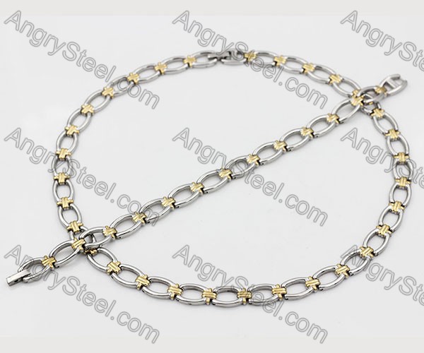 Gold Steel Large Necklace and Bracelet Set KJS200035 Price:$85.71