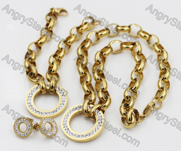 Large Steel Necklace and Bracelet Set KJS550047G Price:$54.44