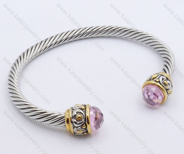 Wholesale Kalen Stainless Steel Clear Stone Bangles with Black Rhinestone Flower - KJB050031 Price:$7.85