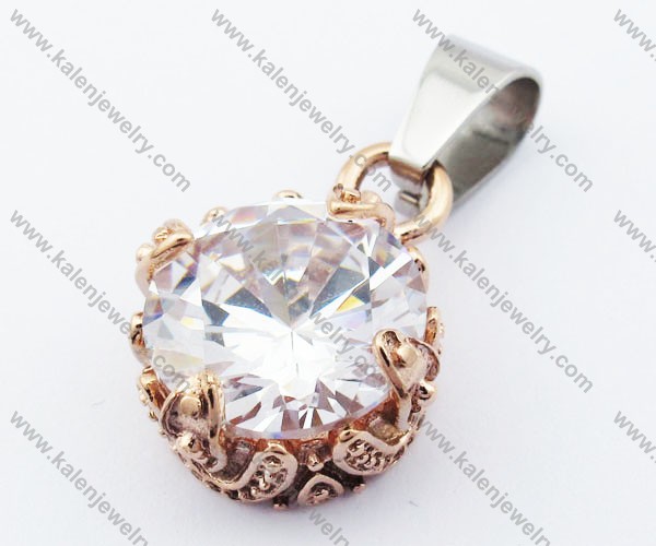 The Video Of Rose Gold Stainless Steel Inlay Zircon Stone Pendant - KJP051106 :