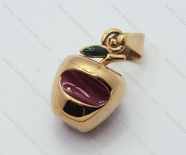 Rose Plating Stainless Steel Casting Red Epoxy Apple Pendants - KJP090024