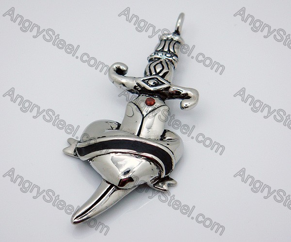 Stainless Steel Heart Puncturing with Sabre Pendants - KJP010032