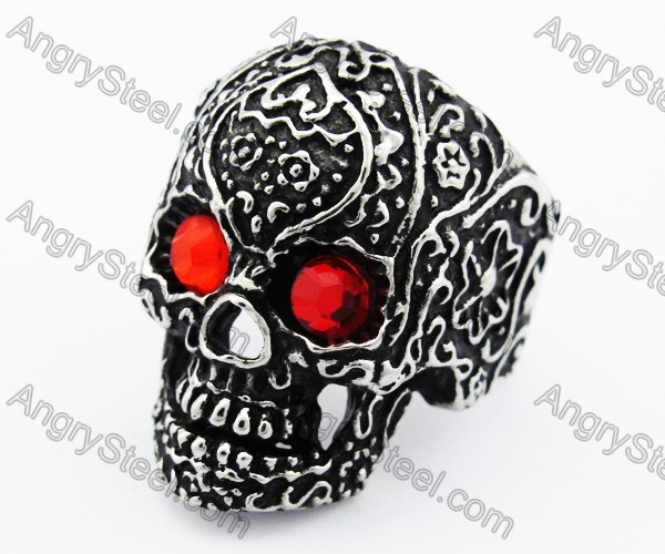 The Video Of Stainless Steel Inlay Red Stone Eyes Skull Ring - KJR010192: