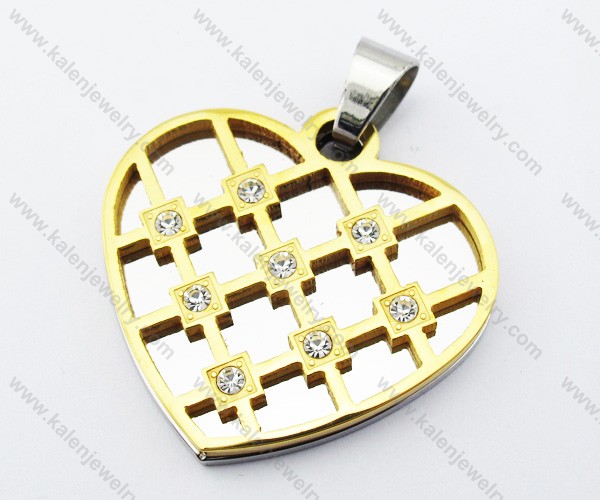 Stainless Steel Inlay Stones Gold Plating Heart Pendant - KJP051142
