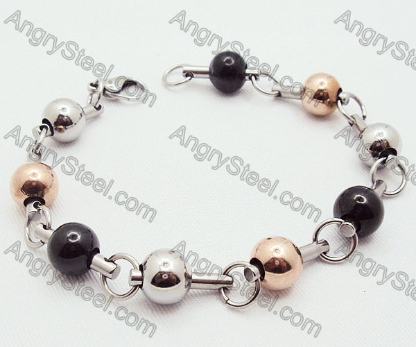 Stainless Steel Stamping Bracelets with Gold, Black, Silver plating Ball Beads - KJB200014