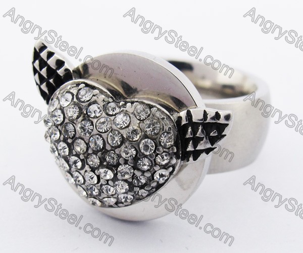 Stainless Steel Stone Wings Heart Ring KJR010233 Price:$3.03